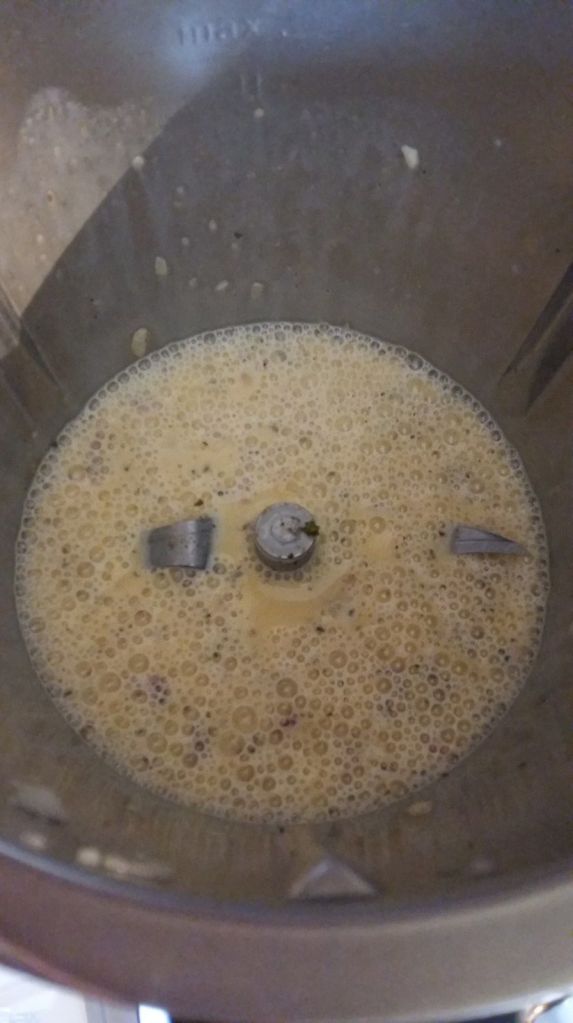 - A la sonnerie, ajouter la crème et le lait, puis les œufs et mélanger 35sec/Vit3.