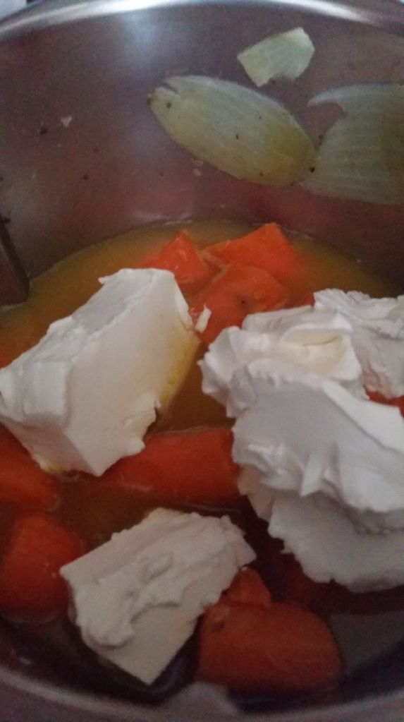 - Laisser refroidir un peu, ajouter le St Môret puis mixer pendant 40 sec de la vitesse 4 à 9.