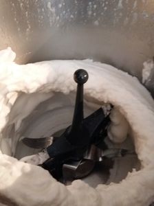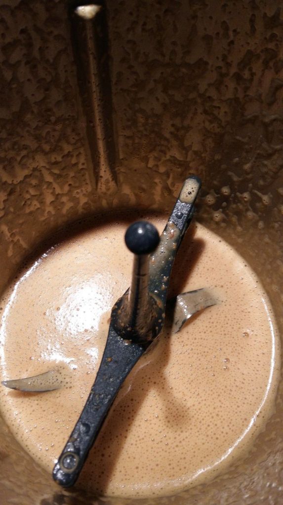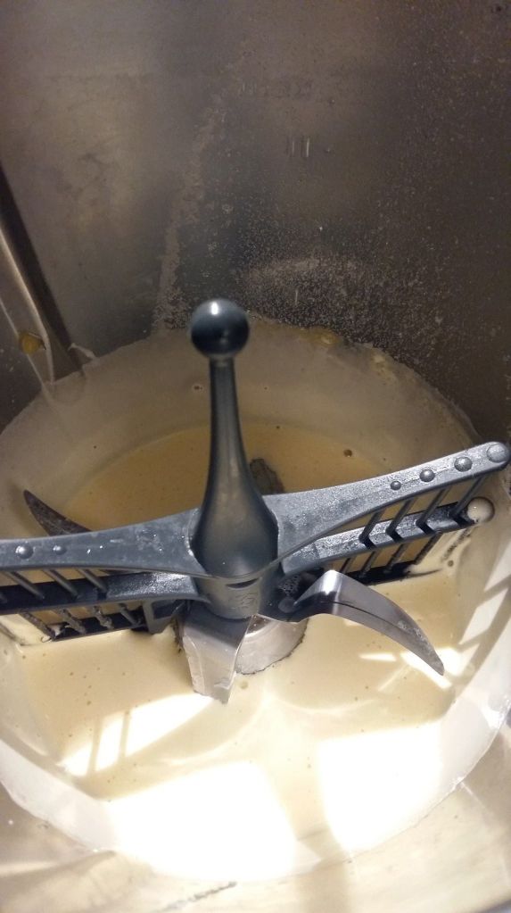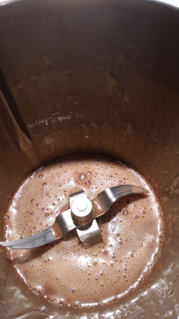 - Monter la crème liquide en crème fouettée (j’utilise mon speedy chef) et l’incorporer à la crème au caramel froide.