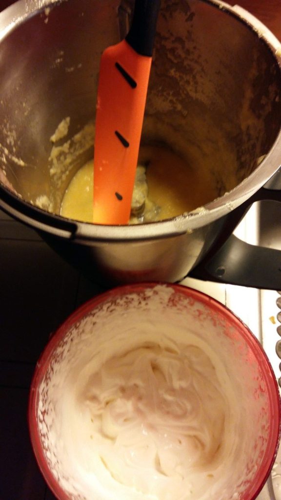 - Mélanger cette préparation délicatement aux blancs en neige.
