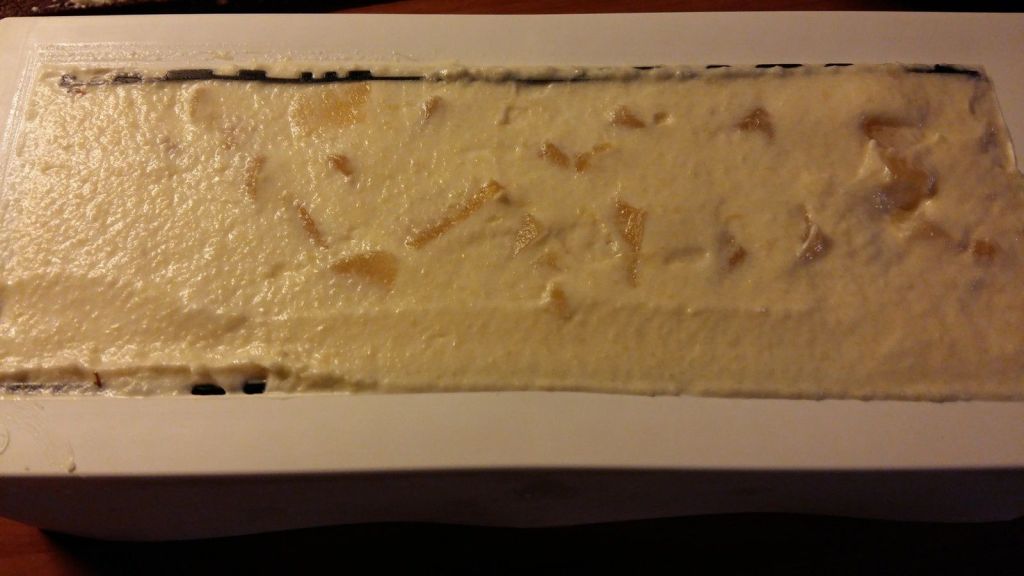 - Monter la crème fraîche en crème fouettée et l’incorporer au mélange précédent.