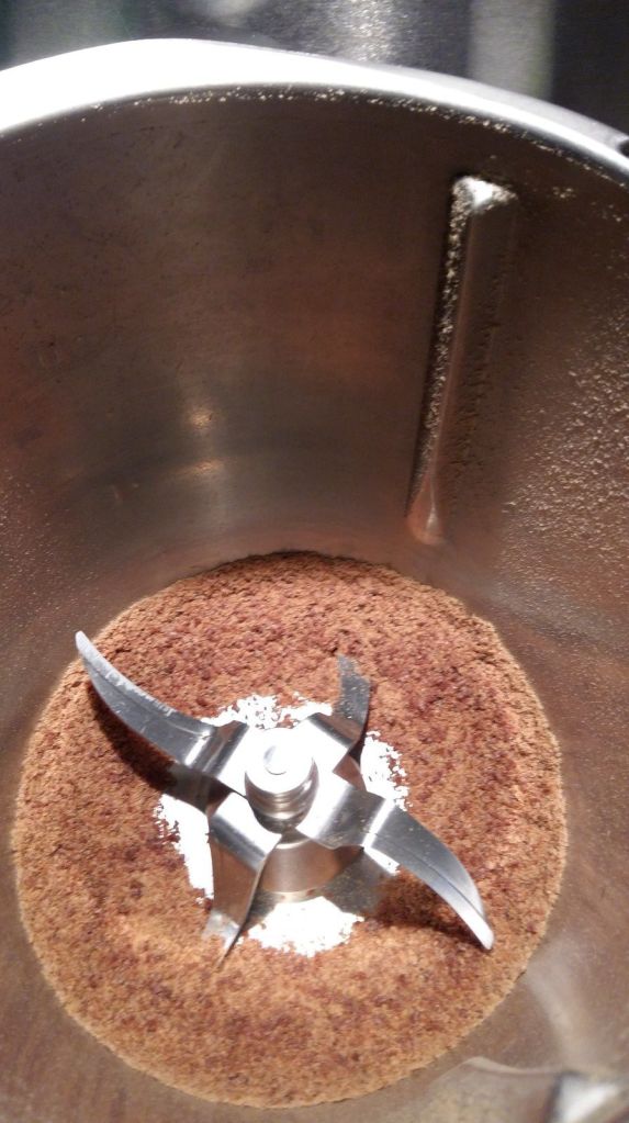 - Vous avez donc 80g de sucre glace dans le bol, vous ajoutez la poudre d’amande et le cacao, pus vous mélanger 30sec/Vit3.
