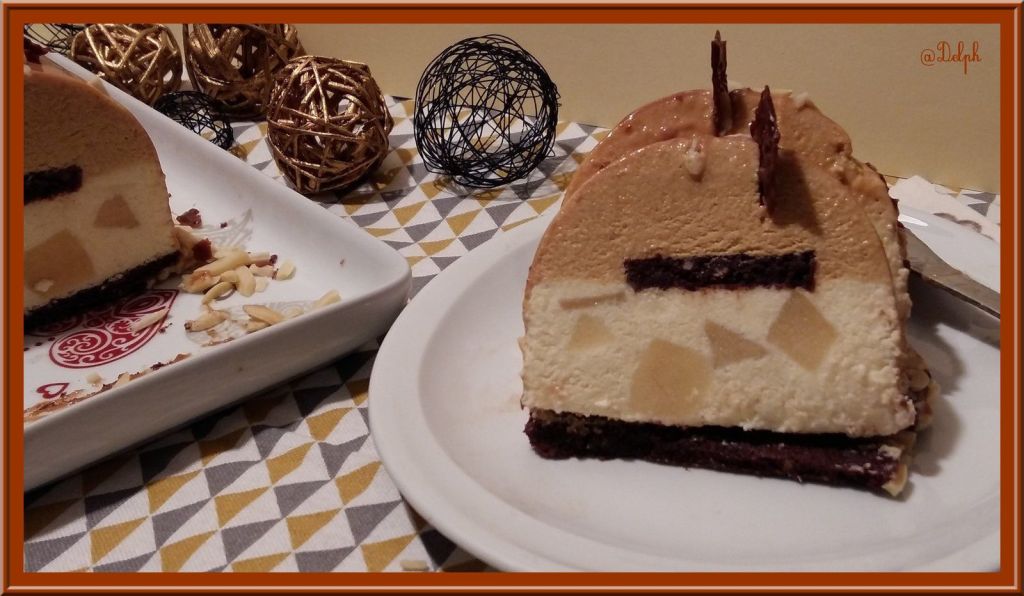 - Mettre cette mousse sur la préparation de mousse caramel, ajouter la dernière bande de dacquoise puis placer au congélateur environ 12 heures.
