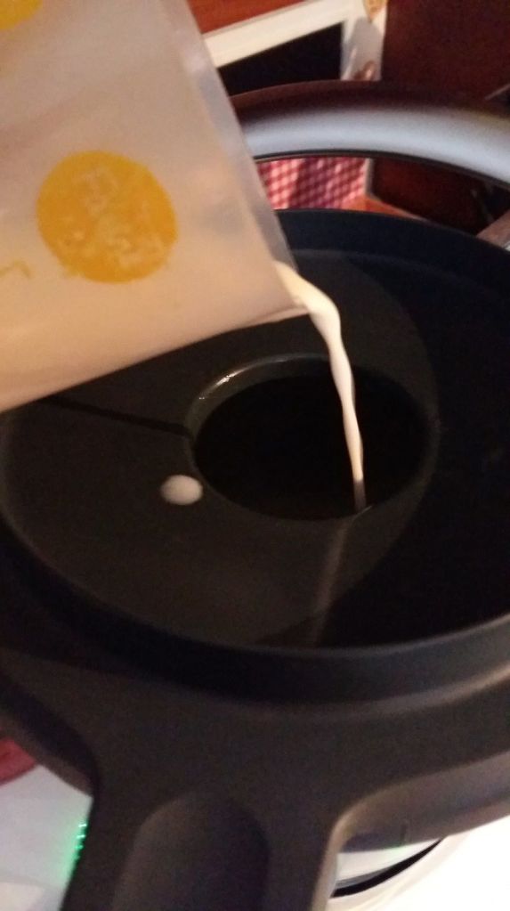 - Mettre le lait et le beurre dans le bol et programmer 4 min /100° /Vit1.