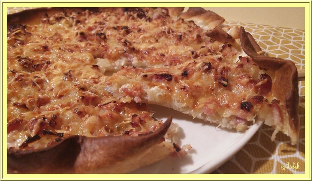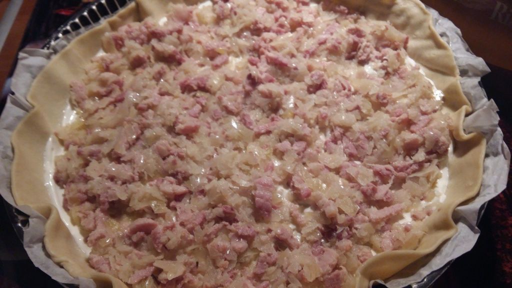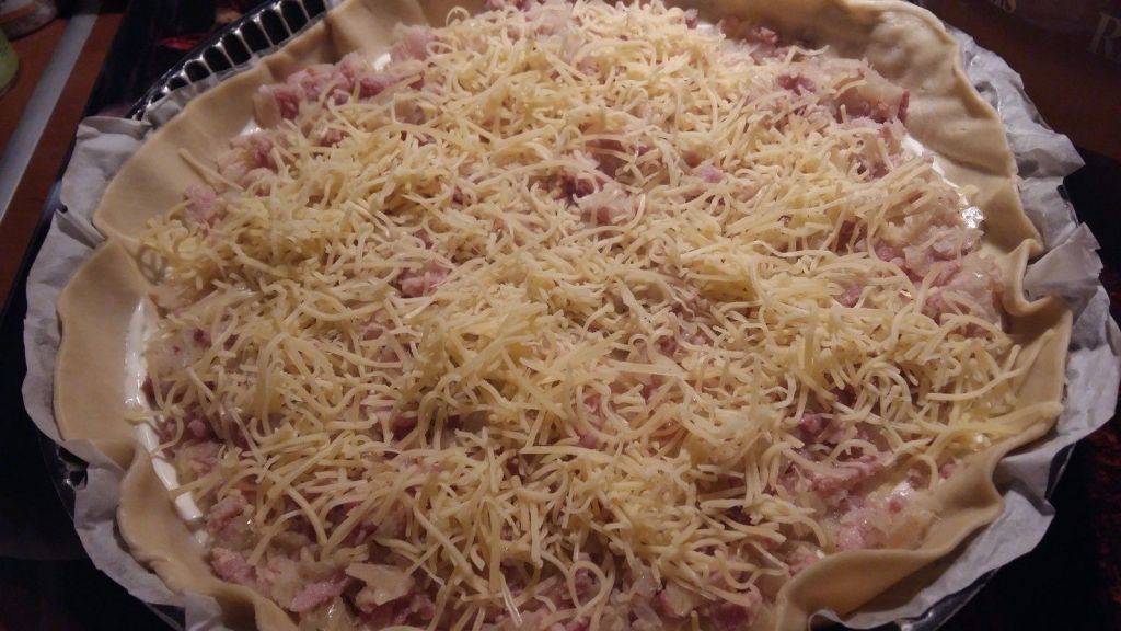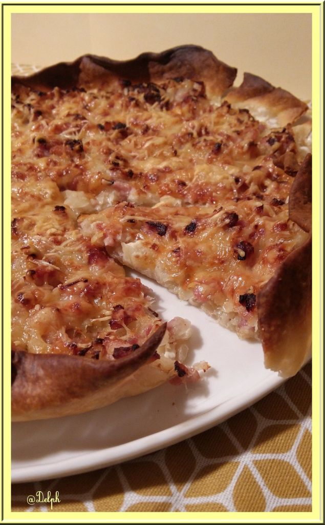 Cette tarte salée est d’origine Alsacienne, normalement il n’y a pas de fromage râpé dessus, mais chez nous on ne peut pas faire sans..Donc c’est à vous de voir selon vos goûts.