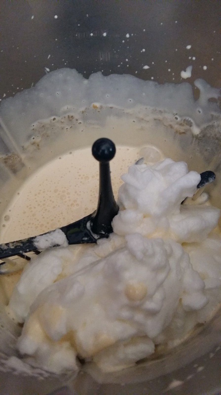 - Insérer le fouet dans le bol, et mettre le sucre et les jaunes, fouetter 3min/Vit3, à la sonnerie enlever le fouet (inutile de le rincer), ajouter le mascarpone et mélanger 40sec/Vit4.