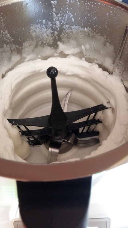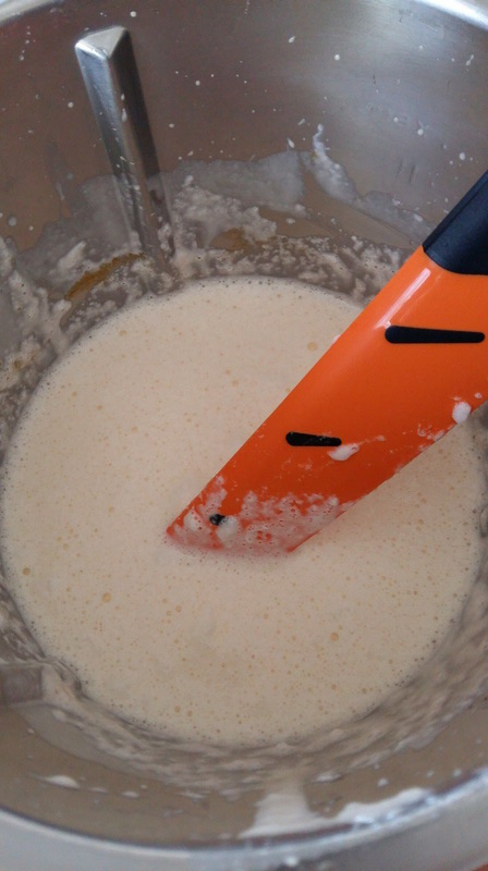- Remettre le fouet puis incorporer les blancs et mélanger 1min30/Vit1. Si le blanc n’est pas bien incorporé donner deux à trois coups de spatule.