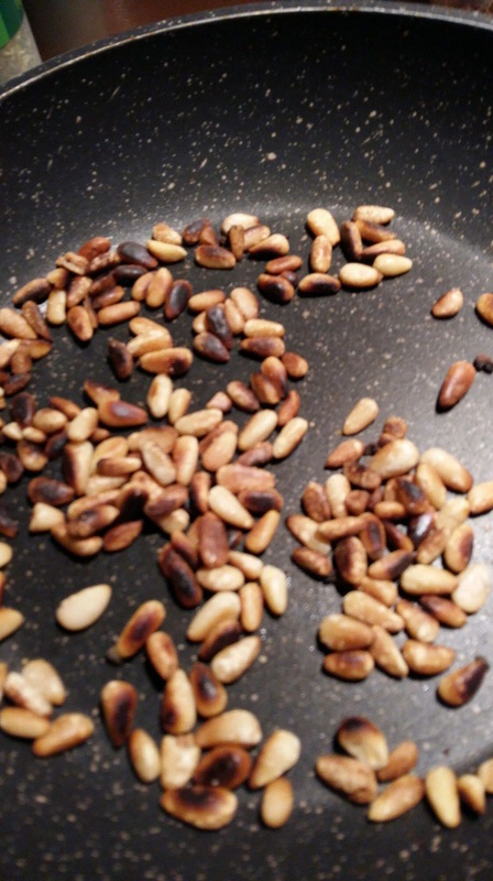 - Faire dorer les pignons de pin dans une poêle sans matière grasse.