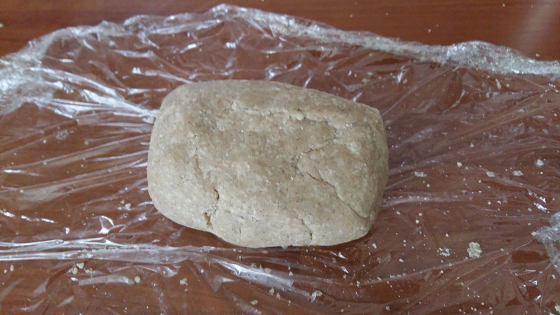 - Mélanger les farines avec le beurre demi-sel, le sucre et l’eau, malaxer mais ne pas trop travailler la pâte pour qu’elle ne soit pas trop élastique. Former une boule, l’envelopper dans du film alimentaire et réserver au frais au moins 2 h.