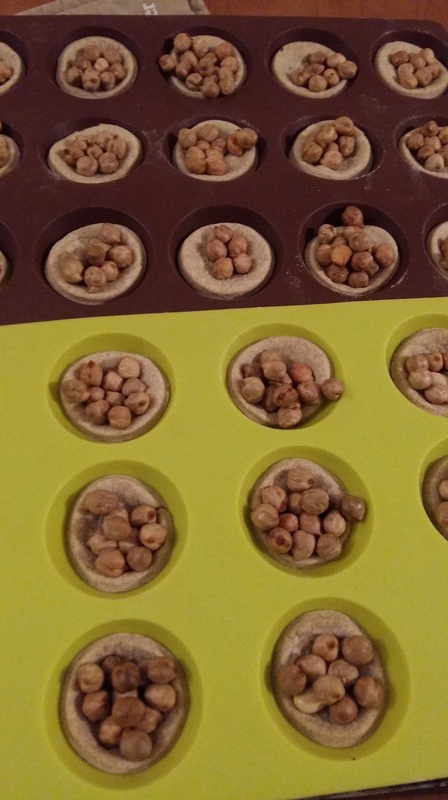 - Étaler la pâte, la disposer dans des moules à tartelettes, piquer et lester la pâte avec des poids de cuisson ou des pois chiches et enfourner 10 minutes à 200°C.