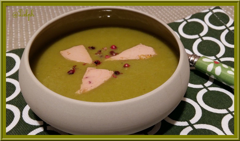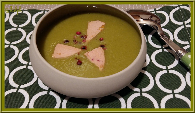 Un petit reste de foie gras mais toujours envie de soupe pour me réchauffer, et hop le tour est joué pour que mon velouté du soir devienne festif.