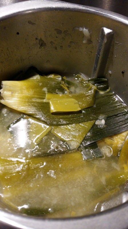 - Préparer les poireaux : enlever les premières feuilles, couper les extrémités (en gardant 8 à 10 centimètres de vert). les laver et les couper en gros tronçons. Éplucher et couper en dés la pomme de terre.
