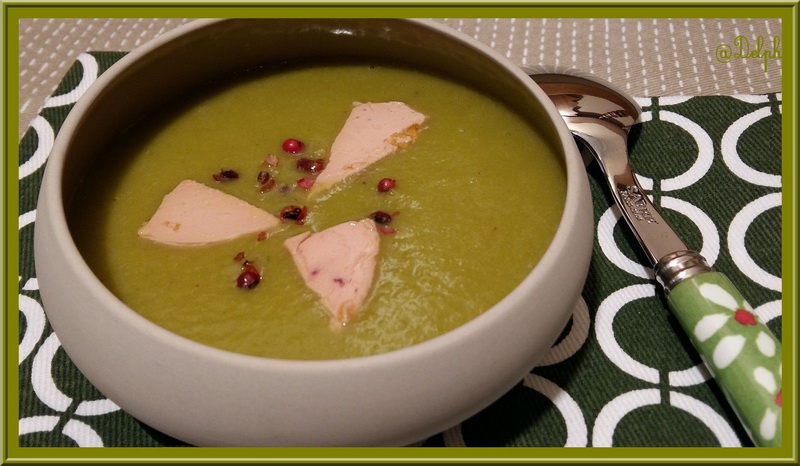 Un petit reste de foie gras mais toujours envie de soupe pour me réchauffer, et hop le tour est joué pour que mon velouté du soir devienne festif.