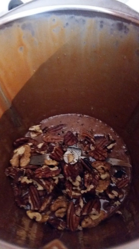 - Ajouter les noix dans le chocolat fondu et mixer 15sec/vit3.