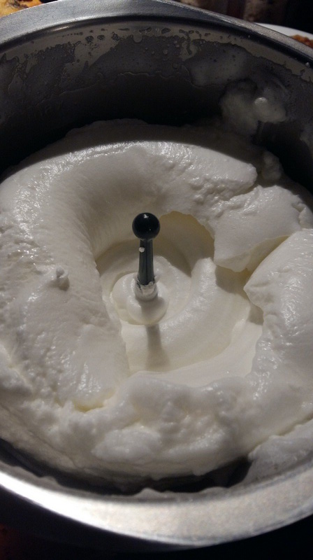 - Faire monter en neige les blancs d’oeufs. Quand ils commencent à être fermes, ajouter le reste du sucre.
