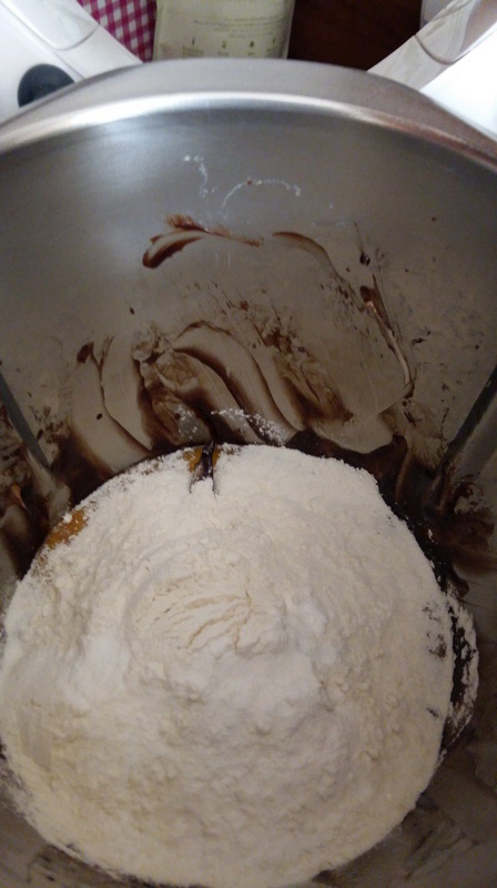 - Ajouter les jaunes d’oeufs, la farine, la levure et le reste du sucre puis mélanger 30sec/Vit4. Ajouter les blancs d’oeufs montés en neige et mélanger 2min/Vit1, finir avec la spatule pour bien racler les bords.