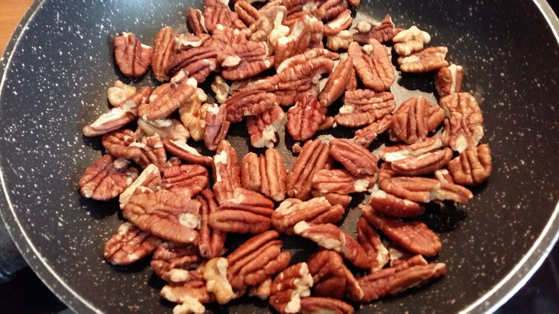 - Pendant ce temps, griller à sec les noix dans une poêle anti-adhésive.