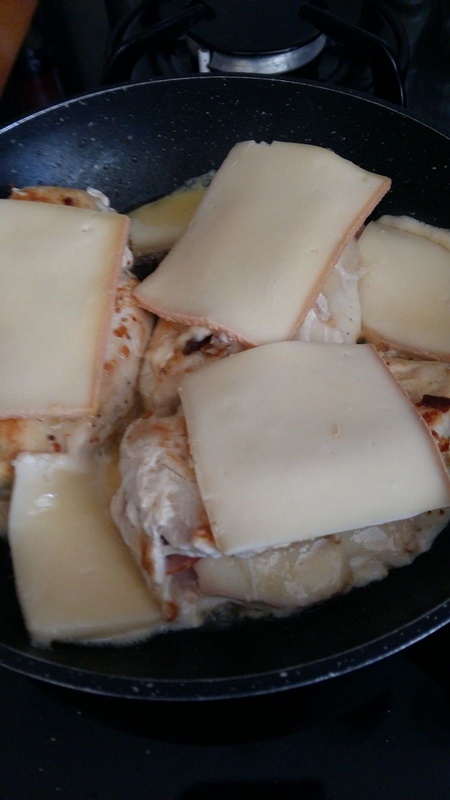 - Lorsque les escalopes sont bien cuites, recouvrir chaque escalope avec une tranche de raclette, puis couvrir votre poêle et laisser cuire toujours à feu moyen pendant encore 10 minutes.