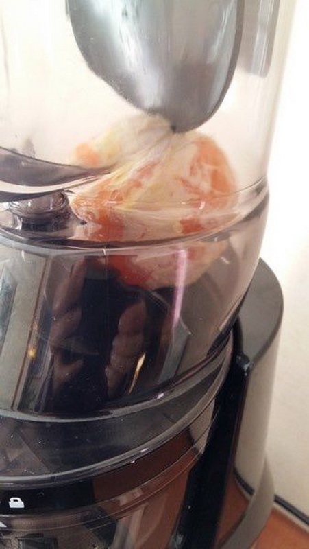 1. Éplucher vos fruits, puis les mettre un par un par l’ouverture de votre extracteur.