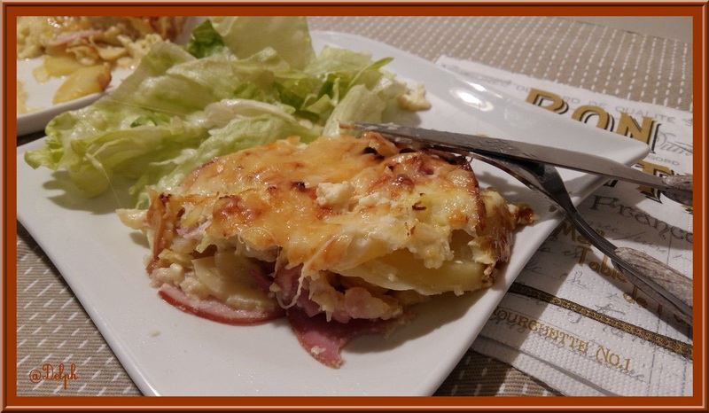- Dans un moule à manqué, beurré, disposer une couche de pommes de terre, un peu d’oignons puis une couche de comté râpé, couvrir de bacon, puis continuer l’opération une nouvelle fois. Alterner pommes de terre, oignon, comté râpé, et bacon.