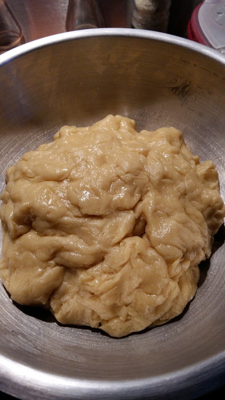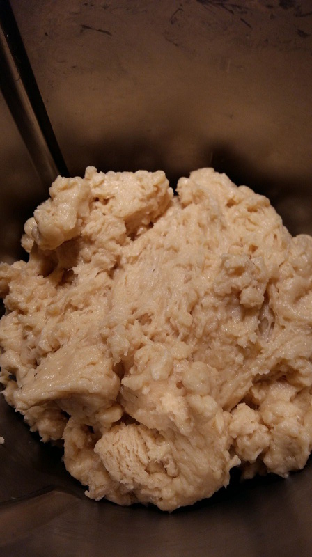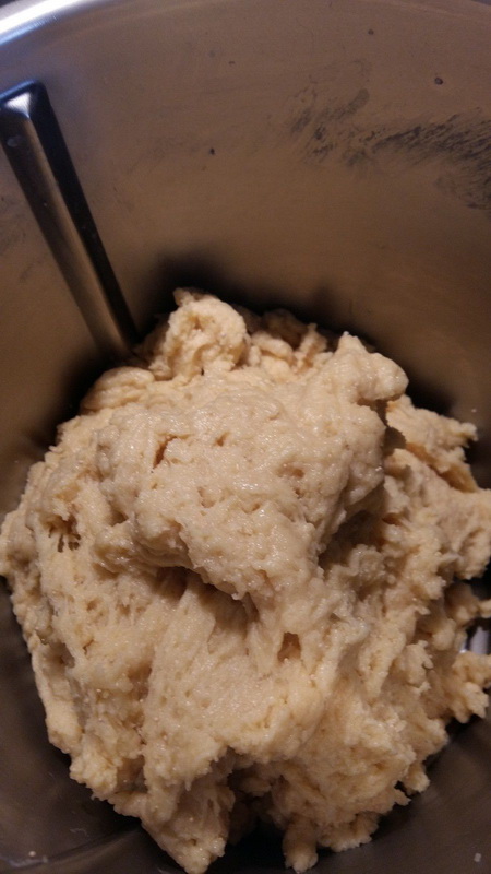 - Pétrir environ 10mn jusqu’à ce que vous aurez une pâte élastique, lisse et qui se décolle légèrement des parois de la cuve et claque.