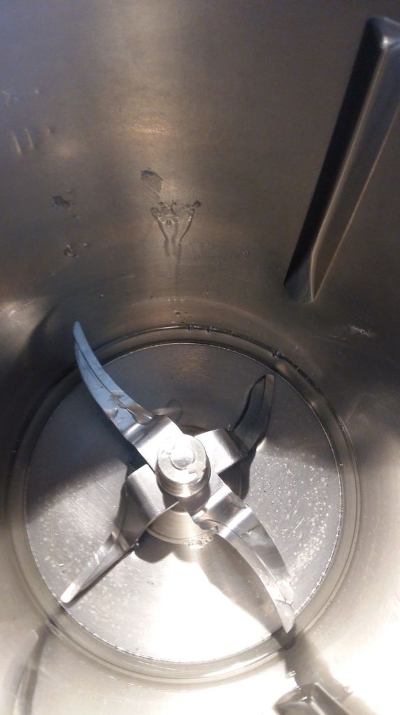 - Mettre l’huile de coco et la réchauffer 1 min/60°C/Vit1, à la sonnerie, racler les bords et si l’huile n’est pas totalement fondu continuer 30sec/60°C/vit1.