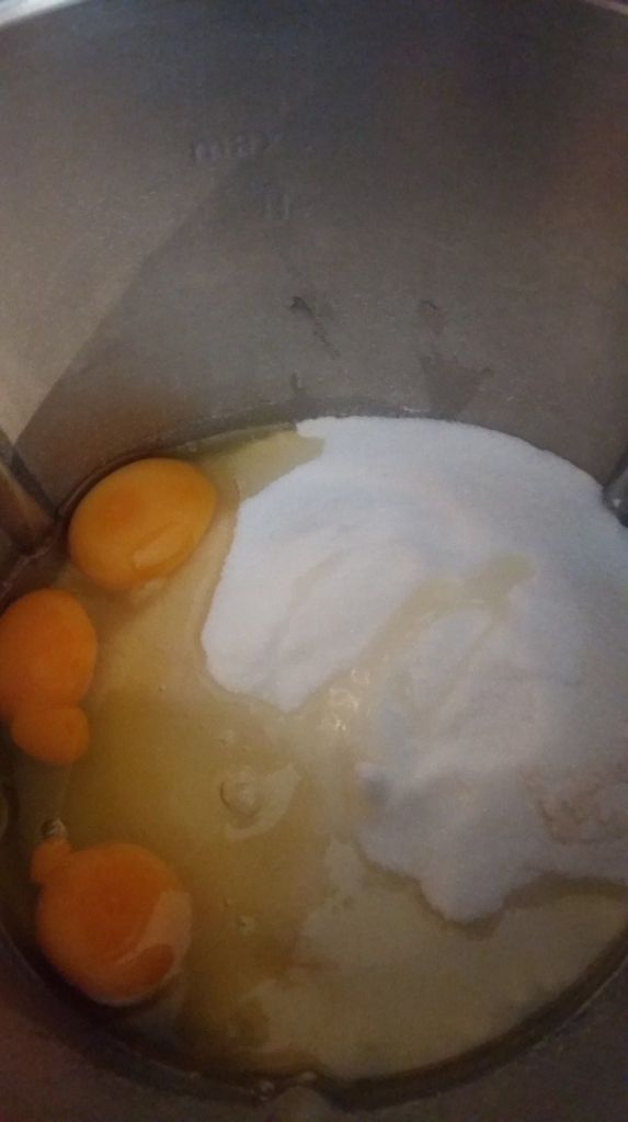 - Mélanger le sucre avec les œufs entiers en fouettant vivement.