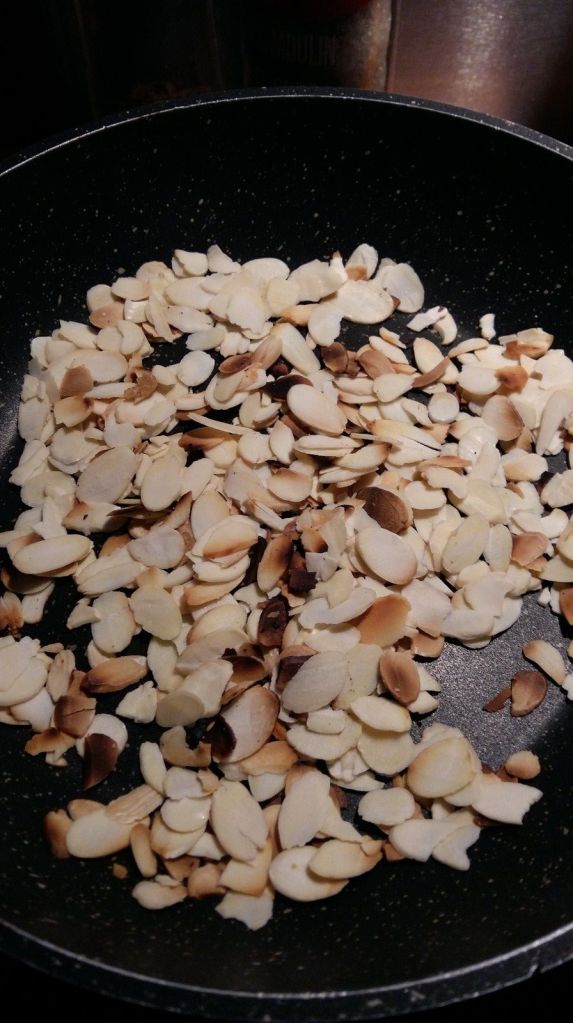 - Au moment de servir faire torréfier vos amandes dans une poêle anti adhésive, puis parsemer vos amandes sur vos crèmes, vous pouvez servir.