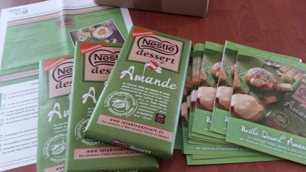 Il y a quelques jours je vous ai dit que j’ai eu la chance d’être sélectionnée pour tester les nouvelles tablettes chocolat Amande de Nestlé. J’ai testé les petites crèmes, mais je voulais aussi le tester en gâteau, j’ai ajouté un peu d’extrait d’amande amer, pour que le goût de l’Amande soit prononcé un peu plus mais si n’aimez pas vous pouvez mettre un peu d’arôme Vanille, à vous de voir selon vos goûts.