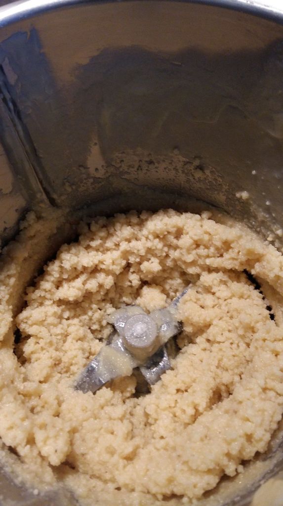 - Mettre le chocolat et le beurre dans le bol puis faire chauffer 3 min30/60°C/Vit2, à la sonnerie ajouter le sucre et la poudre d’amande puis mélanger 30sec/Vit3.