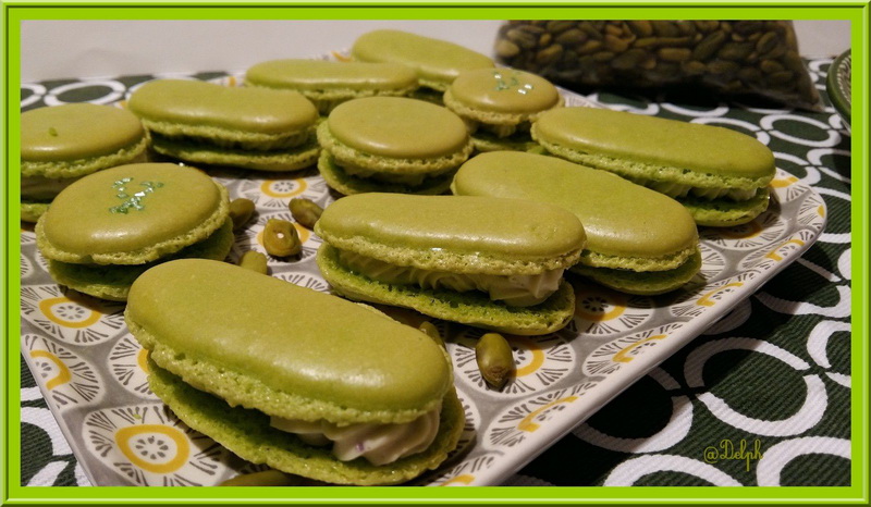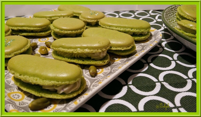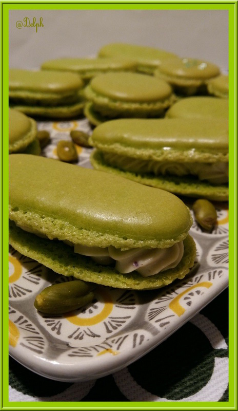 Cela faisait bien longtemps que je n’avais pas réalisé de macarons, j’avais peur de ne pas les réussir, ils ne sont pas très bombés mais ils ont été dévorés tout de même, cette fois-ci j’ai réalisé une ganache montée à la pistache.