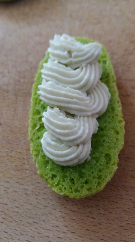 - Garnir avec une poche à douille les macarons avec la ganache à la pistache.