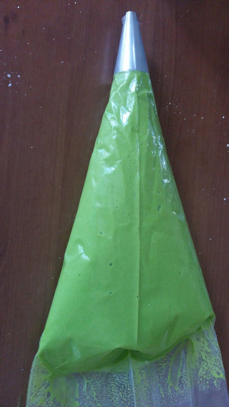 - Garnir une poche à douille lisse n°8 avec la préparation