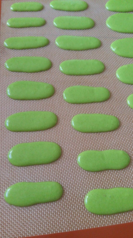 - Placer votre plaque en silicone sur une plaque de four, faites vos macarons en pressant sur la poche de manière régulière.