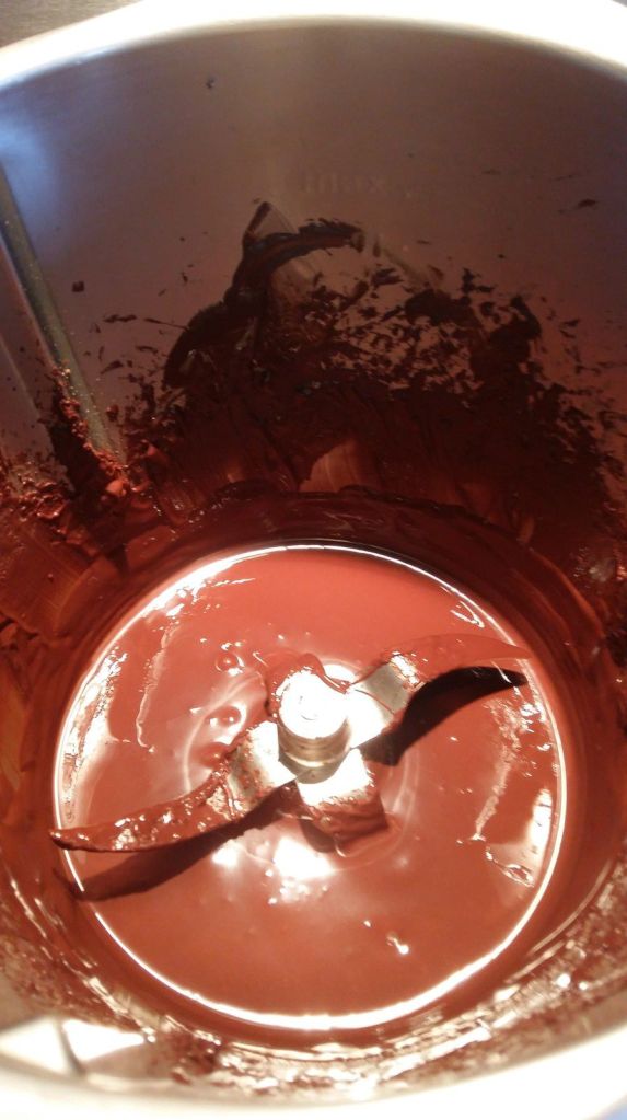 - Mettre vos pistole de chocolat dans le bol puis faire chauffer 5min/50°C/Vit 2, à la sonnerie, racler les bords et continuer de faire chauffer 1min/50°C/vit2.