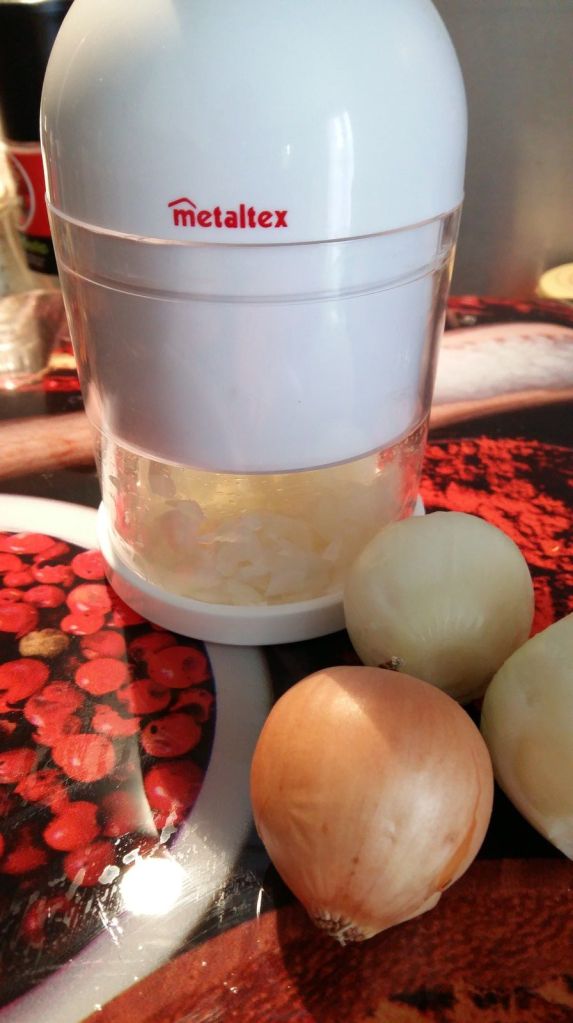 - Éplucher et ciseler vos oignons, comme j’en avais beaucoup, j’ai utilisé mon Twist de Metaltex. Cela m’évite de pleurer.
