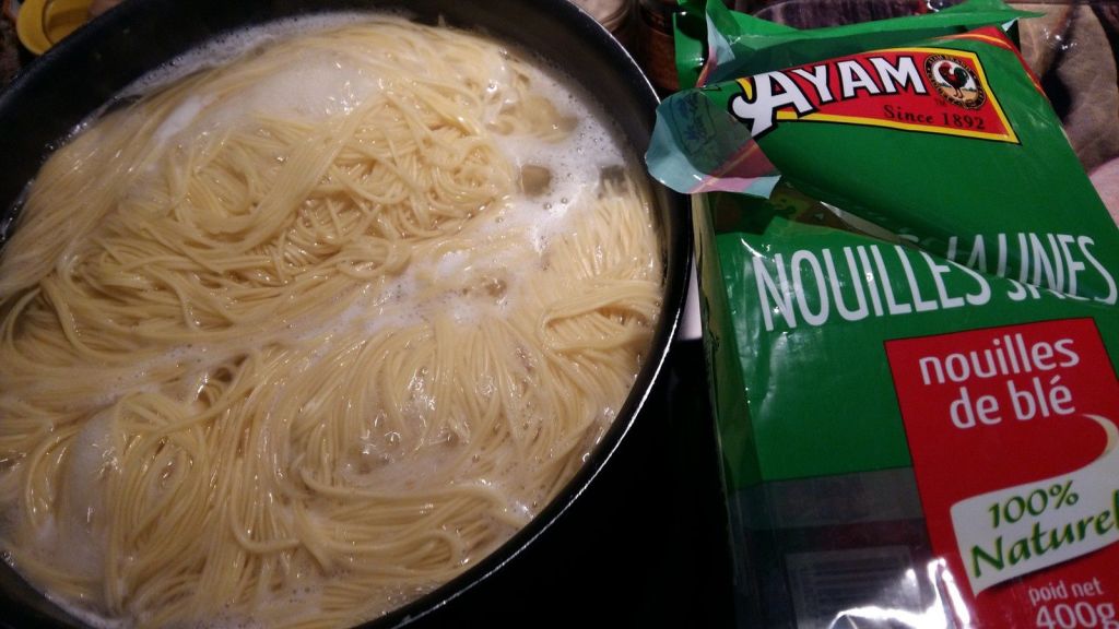- Faire cuire vos nouilles dans de l’eau bouillante salée pendant environ 3 minutes.