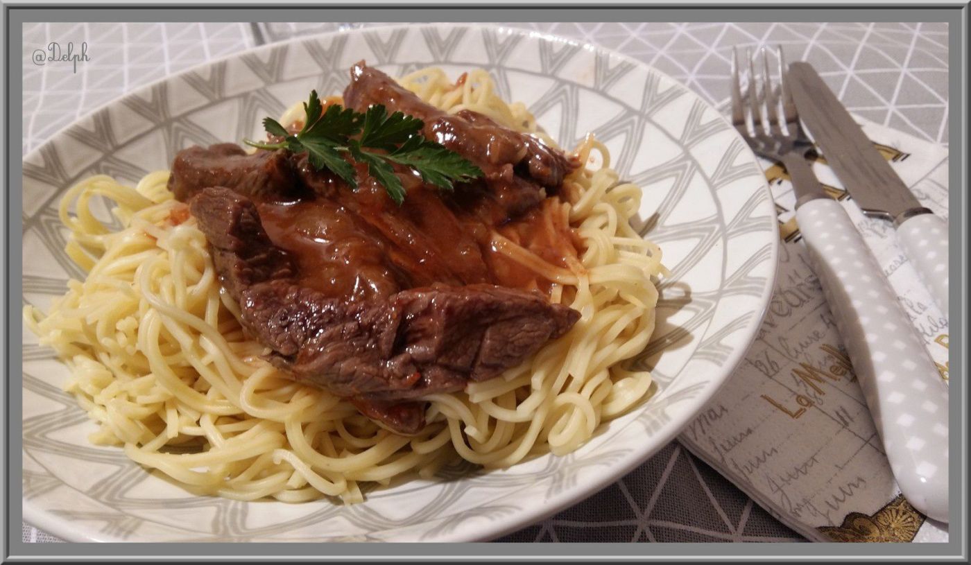 - 600 g de bœuf (Bavette Aloyau)