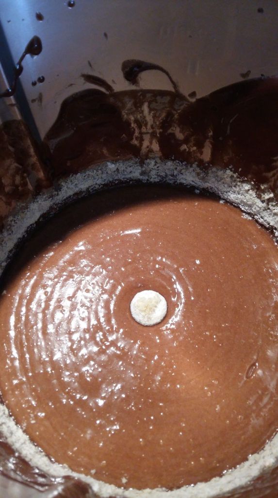 - Ajouter la farine, la levure, la poudre d’amandes, et le mélange beurre-chocolat.
