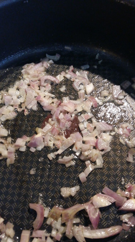 3. Ciseler finement une belle échalote et la faire revenir tout doucement à la poêle avec une cuillère à café d’huile neutre et un peu de beurre.