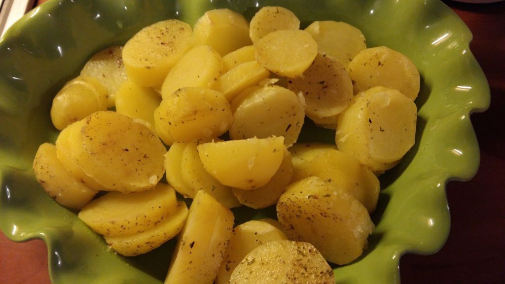 - Couper les pommes de terre en rondelles épaisses , les poser dans le panier Varoma et saupoudrer de persil, poivre et sel.