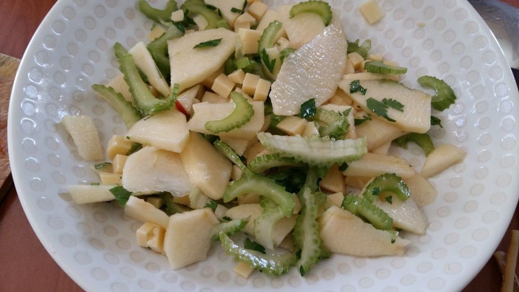 - Laver les branches de céleri et coupez-les en fines lamelles.