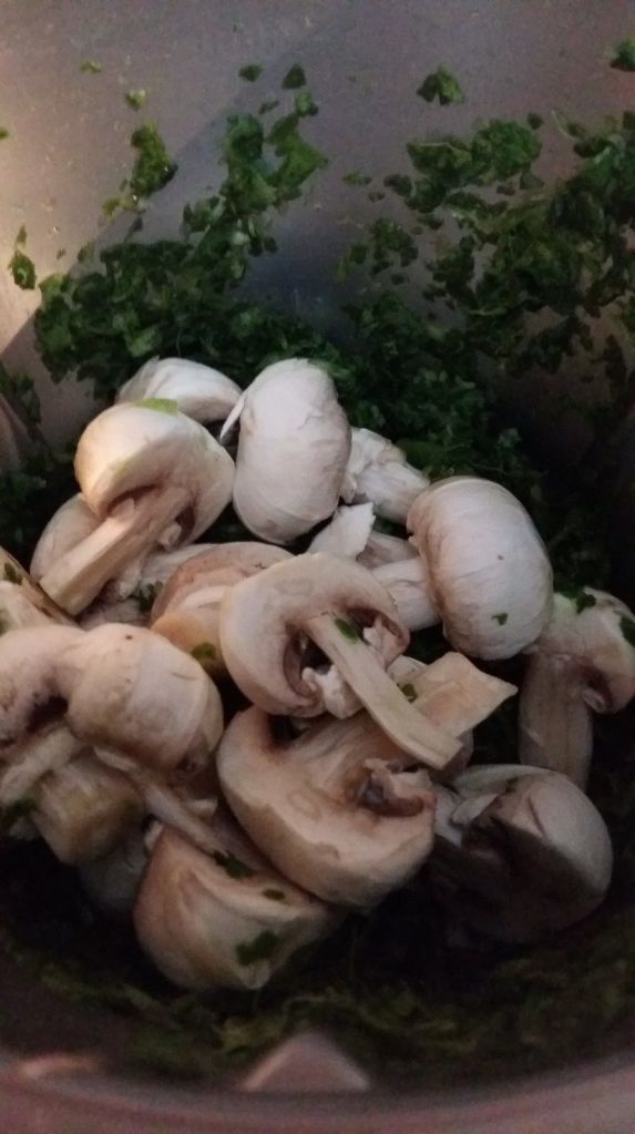 - Laver, éplucher les champignons et les ajouter dans le bol avec l’eau et le bouillon cube puis programmer 16min/Varoma/Vit mijotage.