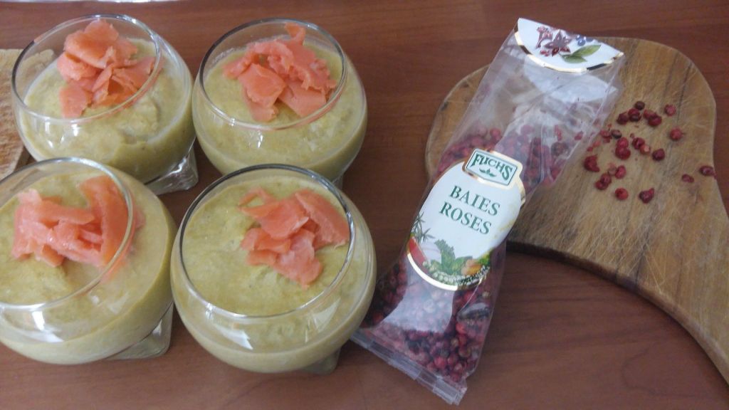 - Au moment de servir, saupoudrer de baie roses écrasées.
