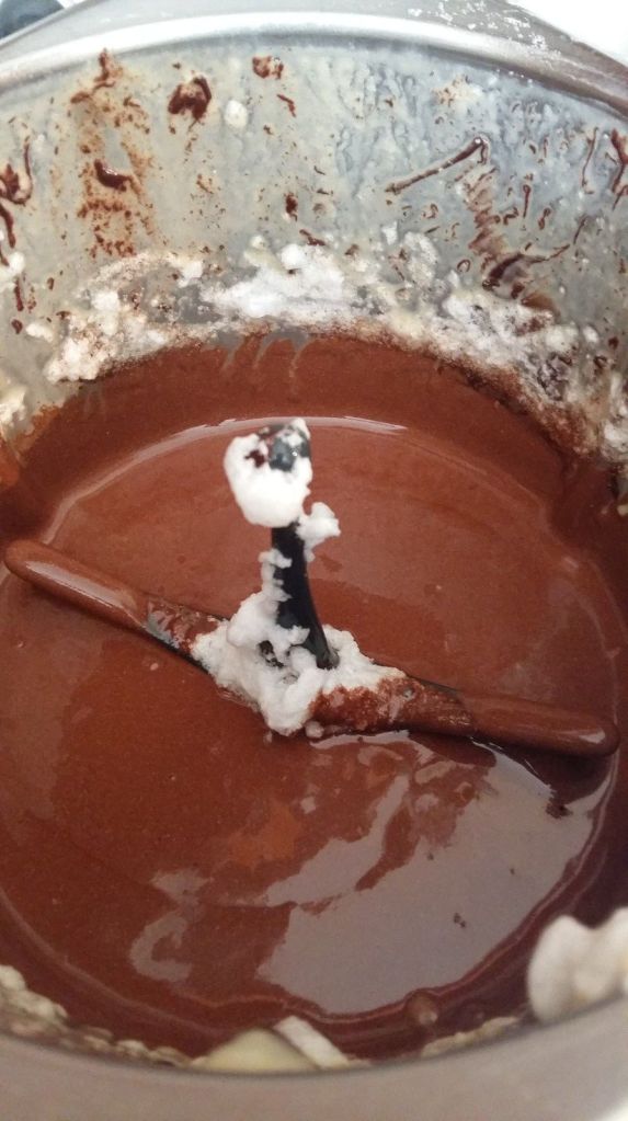 - Mettre les jaunes et les sucres puis fouetter 1 min Vit3, ajouter le fromage blanc et la maïzena puis mélanger 30sec/vit3 puis ajouter le chocolat fondu et mélanger à nouveau 40sec/Vit3.