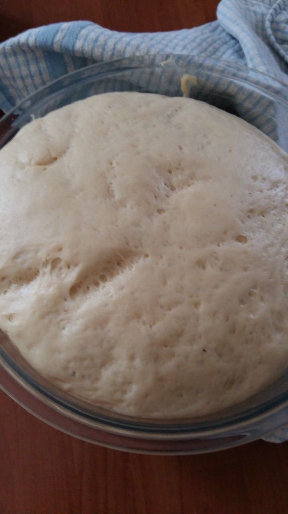 - Placer la pâte dans un récipient. Couvrir avec un torchon propre et laisser lever la pâte dans la partie la plus chaude de la pièce, pour qu’elle double de volume, il faut de 1h à 2h.