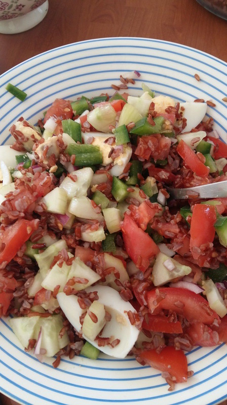 Lors de mes vacances chez mes parents, ils nous ont fait visiter les Saintes-Marie de la mer, j’avais acheté du riz Camarguais rouge, je l’avais dans mes placards mais pas encore utilisé.