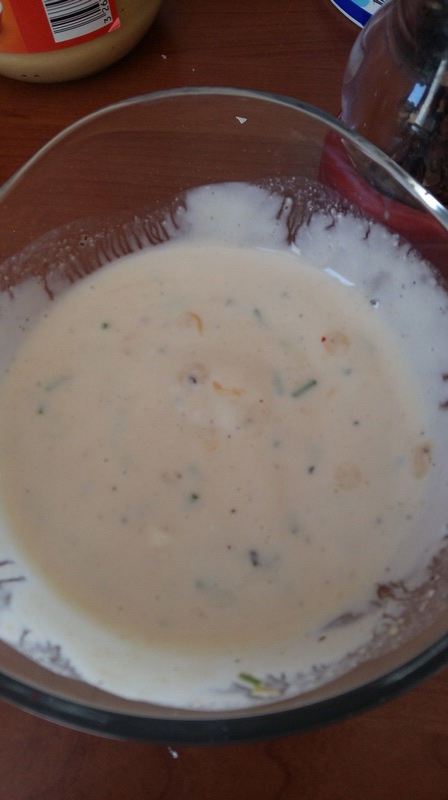 - Préparer votre vinaigrette en mélangeant le fromage blanc, le vinaigre, la moutarde, le sel le poivre et la ciboulette lavée et ciselée.
