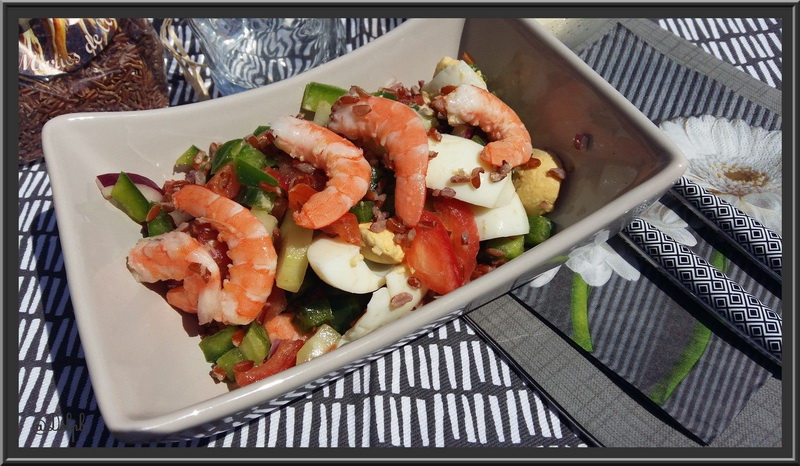 Lors de mes vacances chez mes parents, ils nous ont fait visiter les Saintes-Marie de la mer, j’avais acheté du riz Camarguais rouge, je l’avais dans mes placards mais pas encore utilisé.