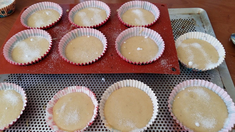 5. Verser cette pâte dans des moules (ou des caissettes) à muffins en ne les remplissant qu’aux trois quarts.
